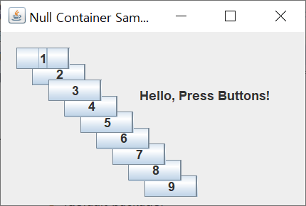 JLabel la = new JLabel("Hello, Press Buttons!");