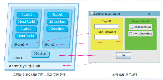 다른 GUI 컴포넌트를 포함할 수 있는 컴포넌트 |